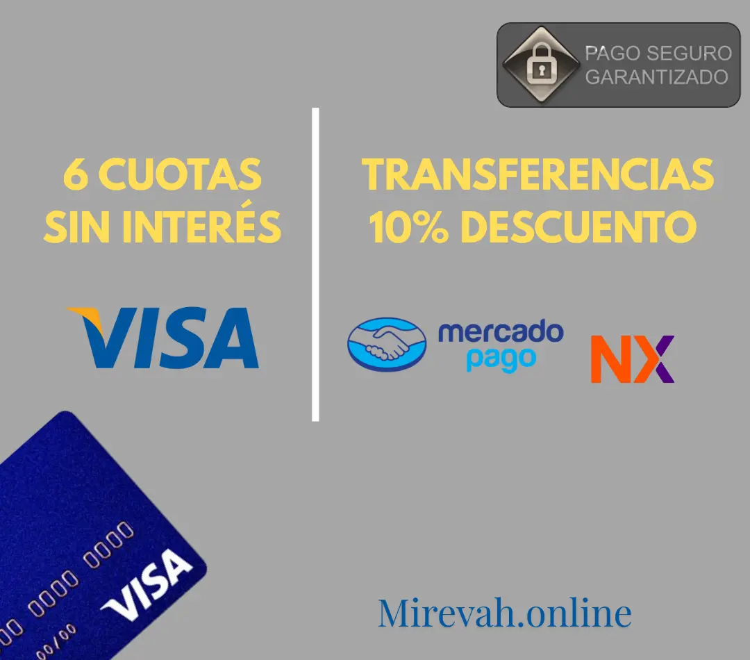 ✅ Transferencia bancaria con 10% de descuento sobre el total de tu compra. ✅ Hasta 6 cuotas sin interés con tarjetas Visa.